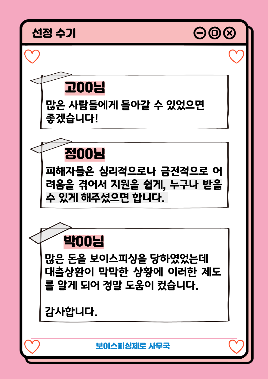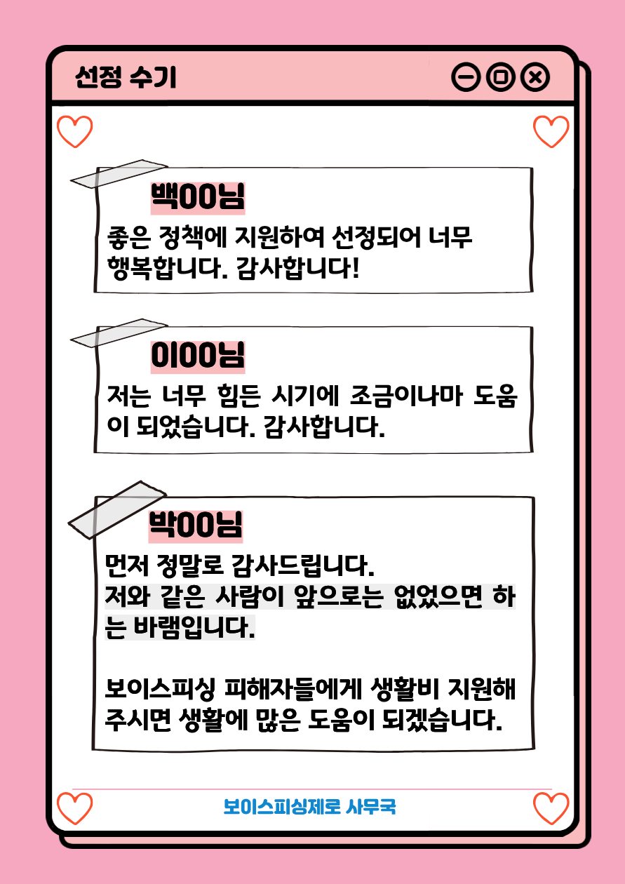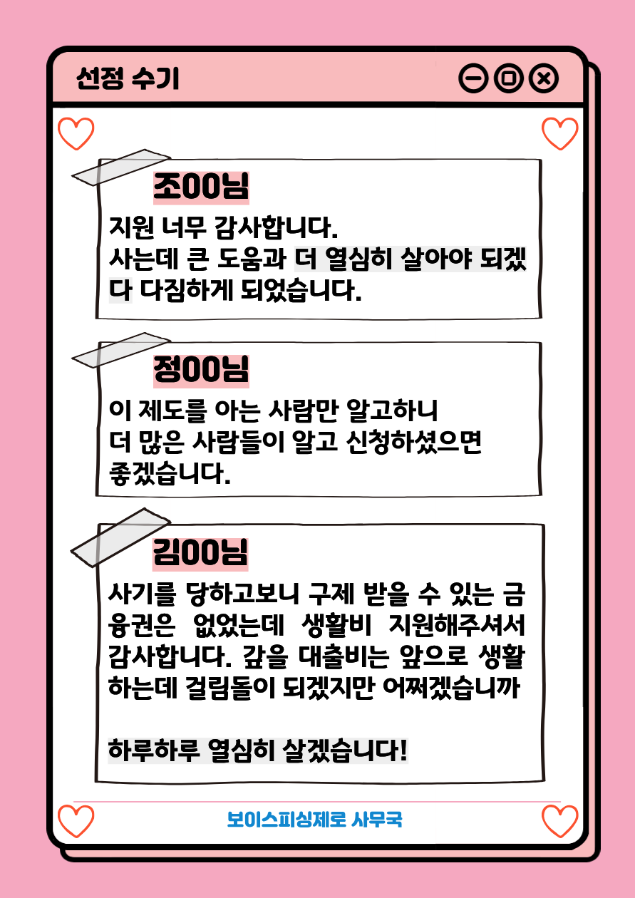 보이스피싱제로 2차년도 11차(8월) 생활비 선정자 후기 모음