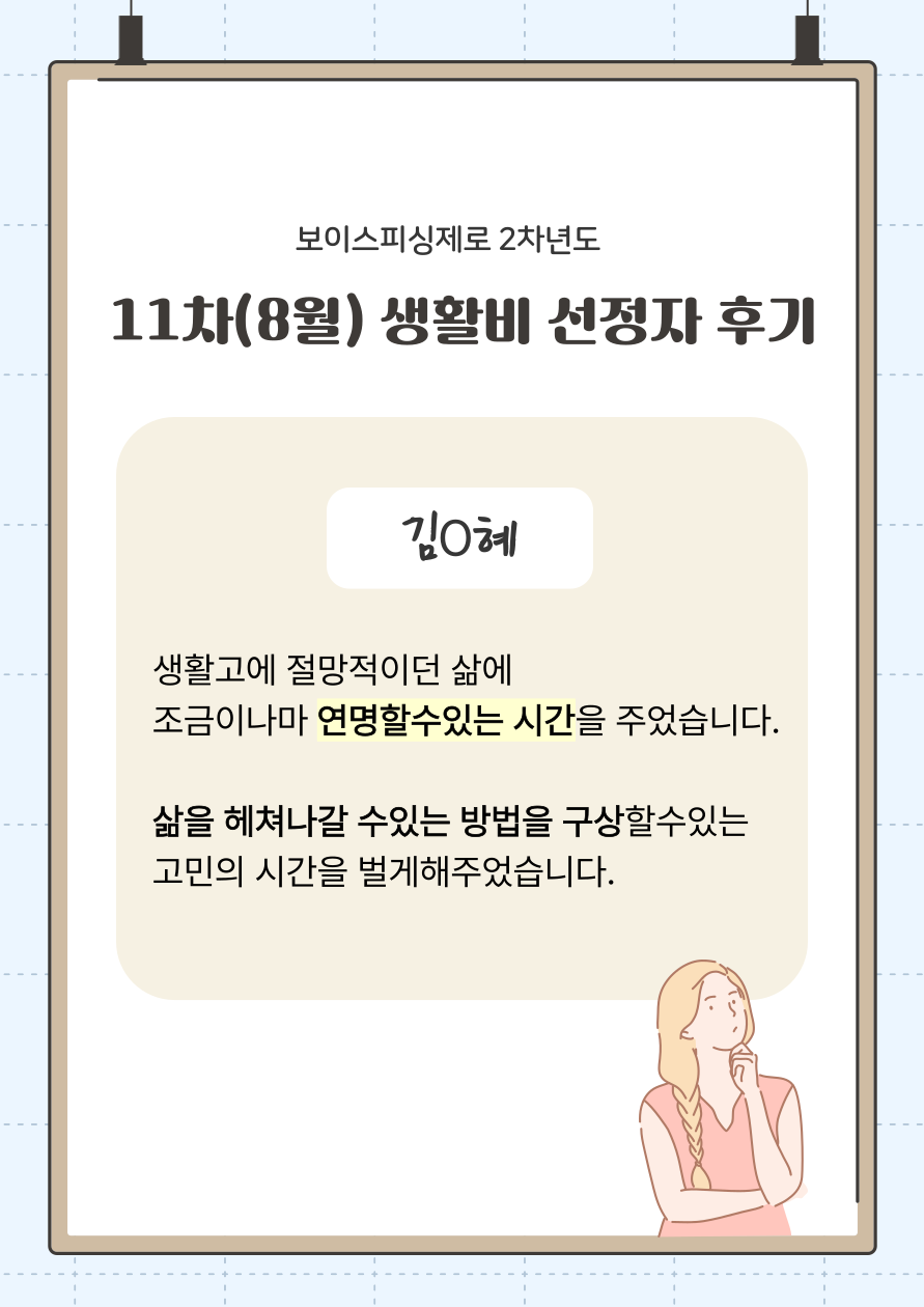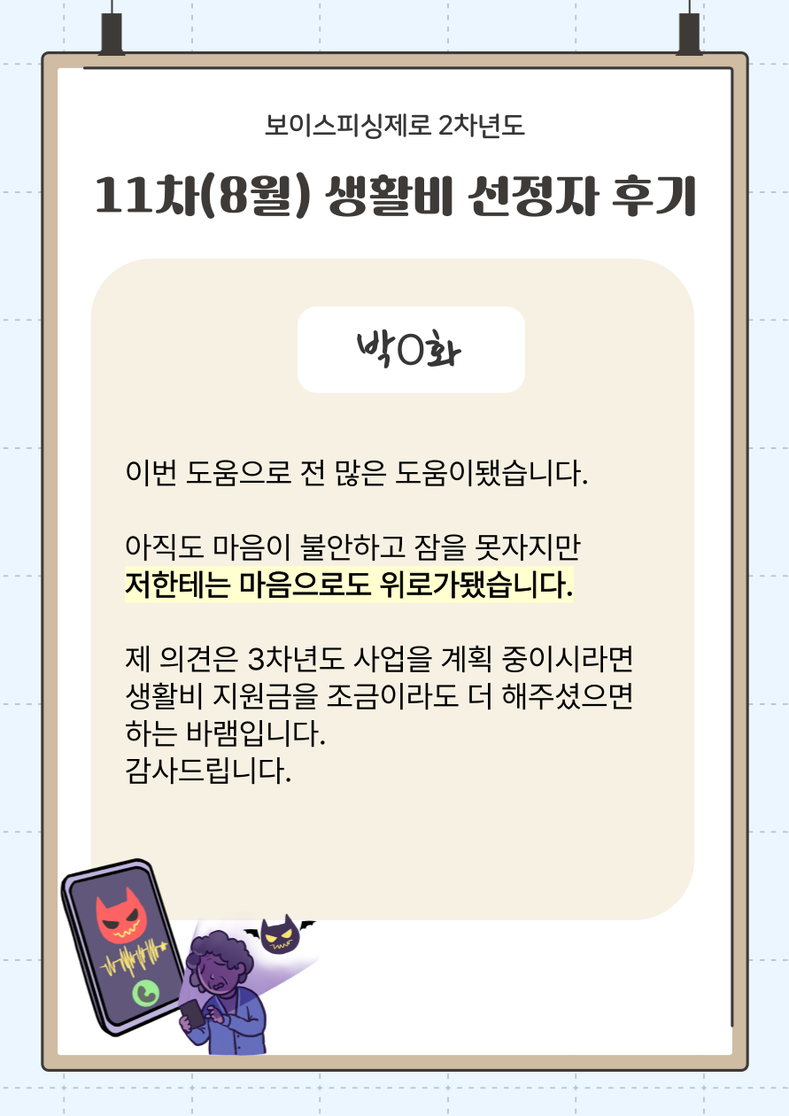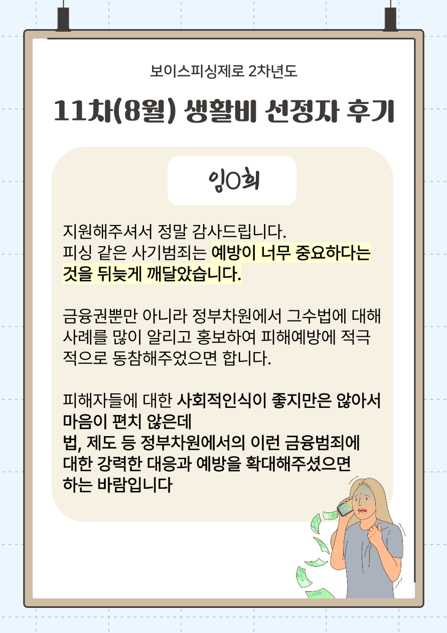 보이스피싱제로 2차년도 11차(8월) 생활비 선정자 후기 모음