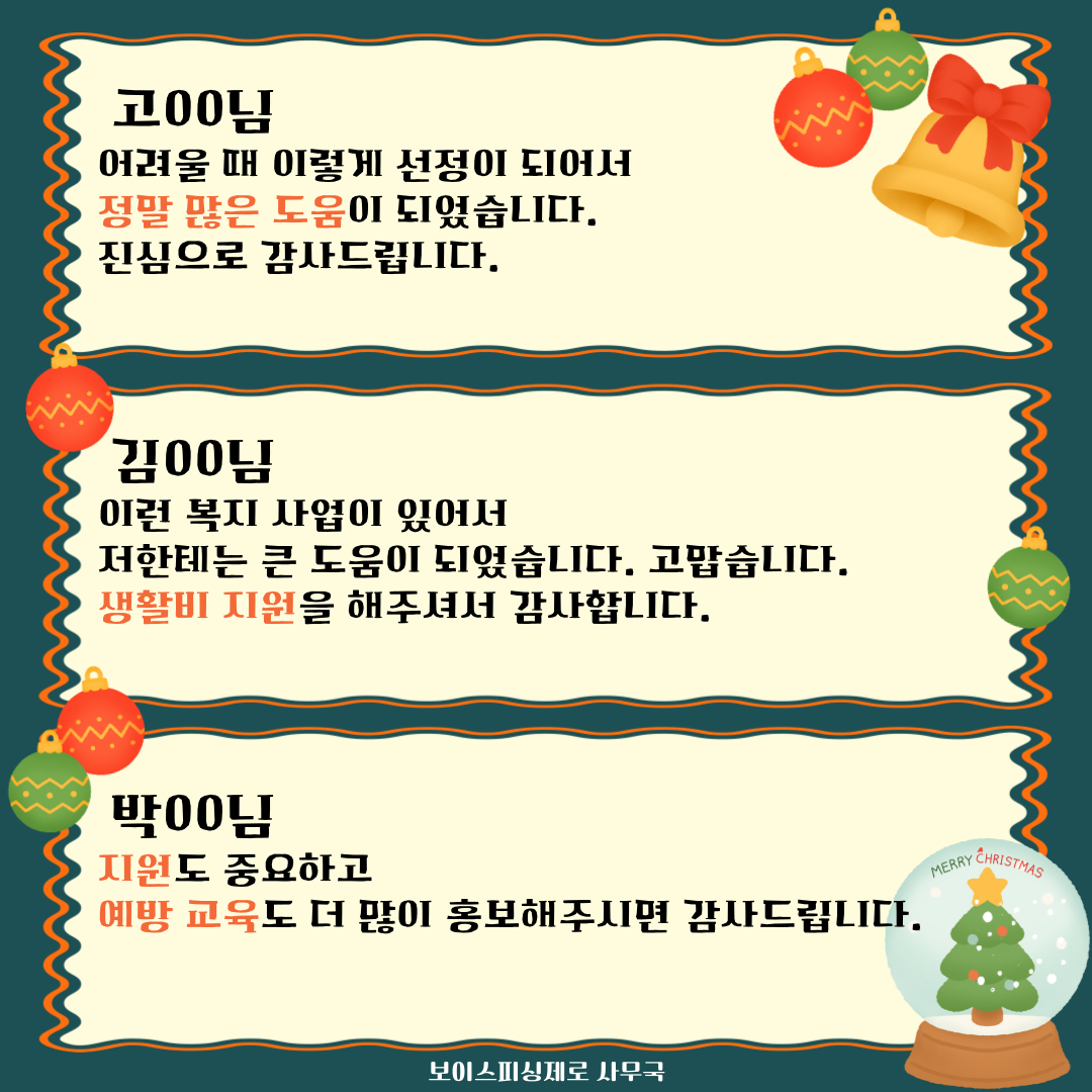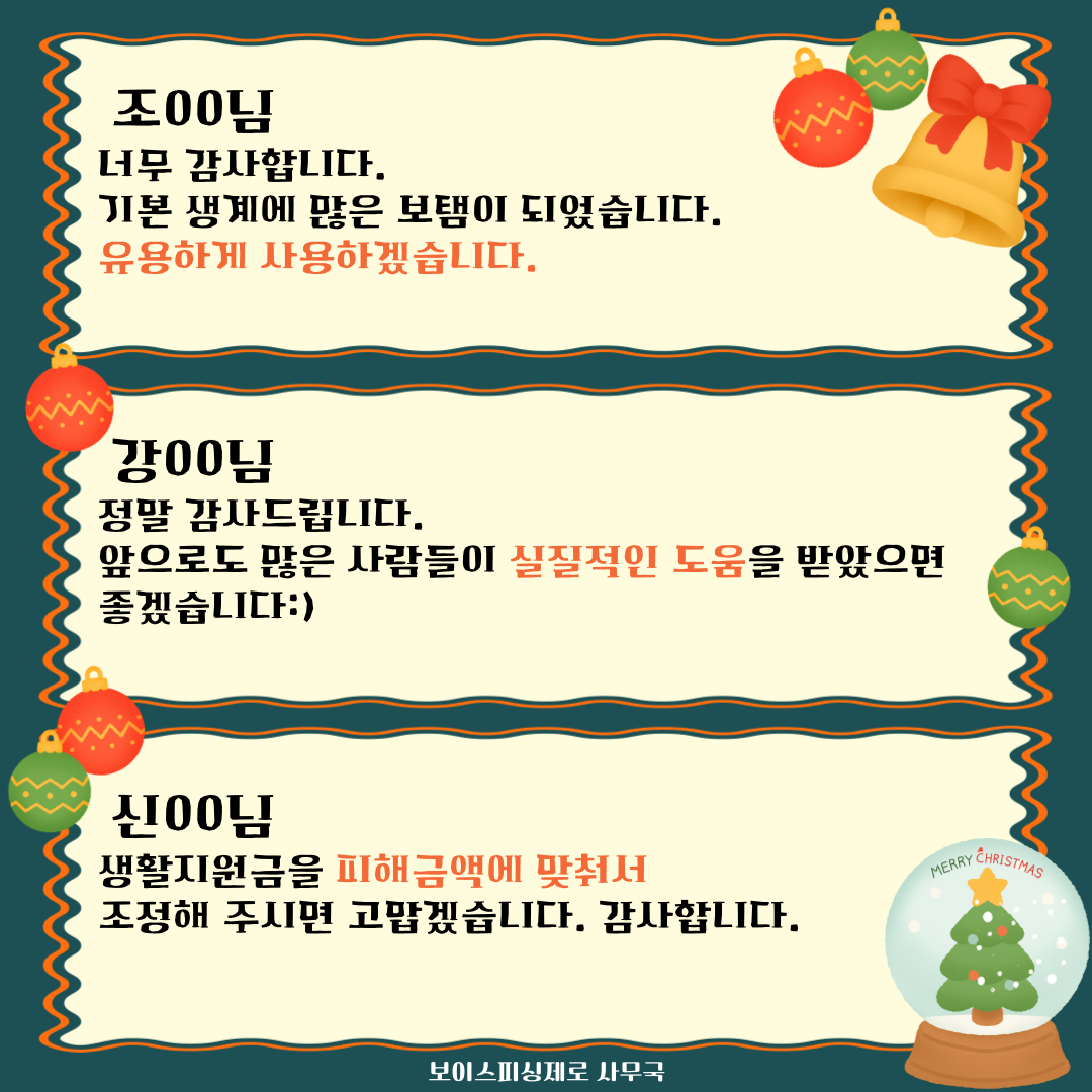 보이스피싱제로 3차년도 3차(12월) 생활비 선정자 후기 모음