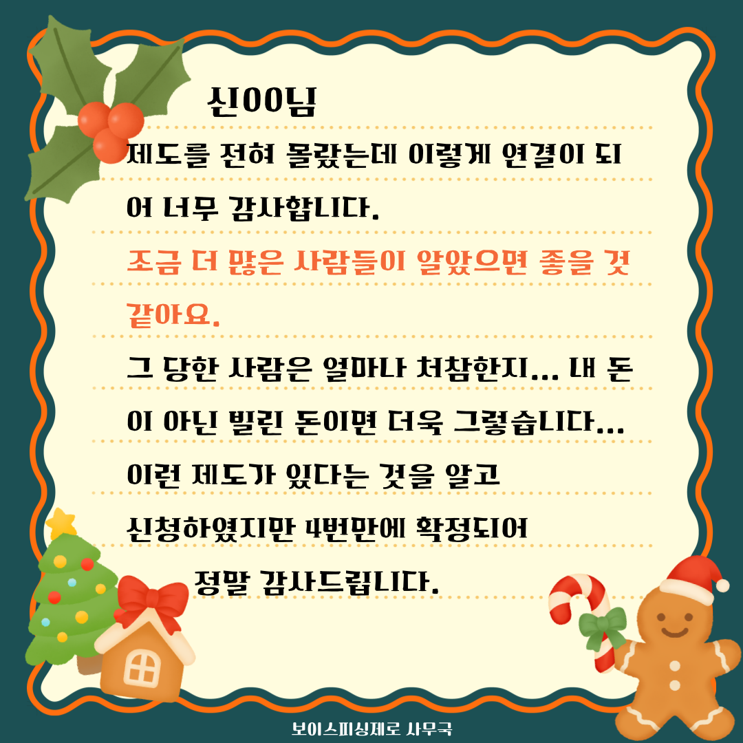 보이스피싱제로 3차년도 3차(12월) 생활비 선정자 후기입니다.